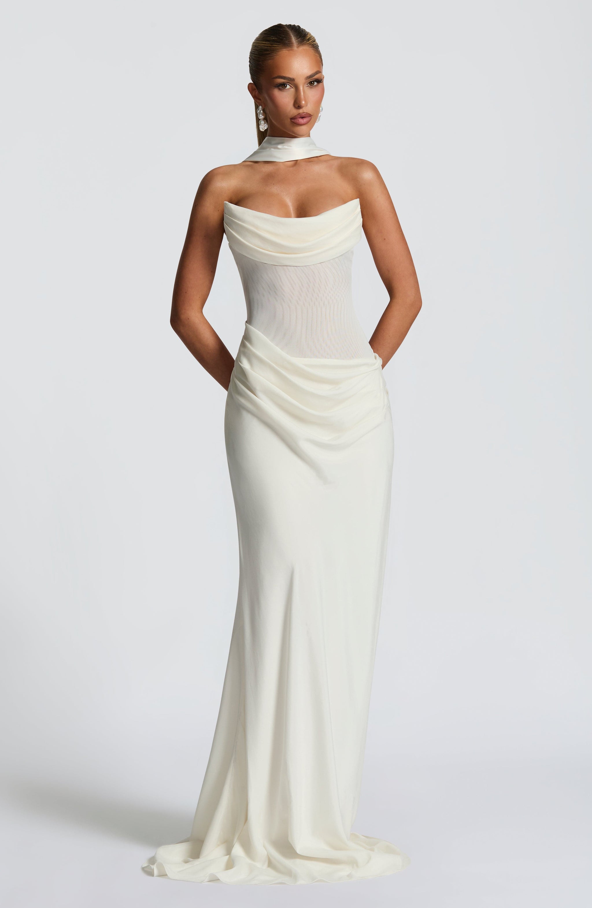 Pensée pour celles qui refusent l’ordinaire, la robe réinvente la silhouette avec une allure sûre, assumée et intensément féminine.