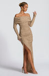Pensée pour celles qui refusent l’ordinaire, la robe réinvente la silhouette avec une allure sûre, assumée et intensément féminine.