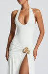 Pensée pour celles qui refusent l’ordinaire, la robe réinvente la silhouette avec une allure sûre, assumée et intensément féminine.